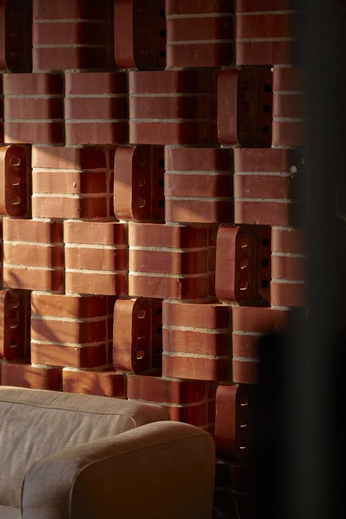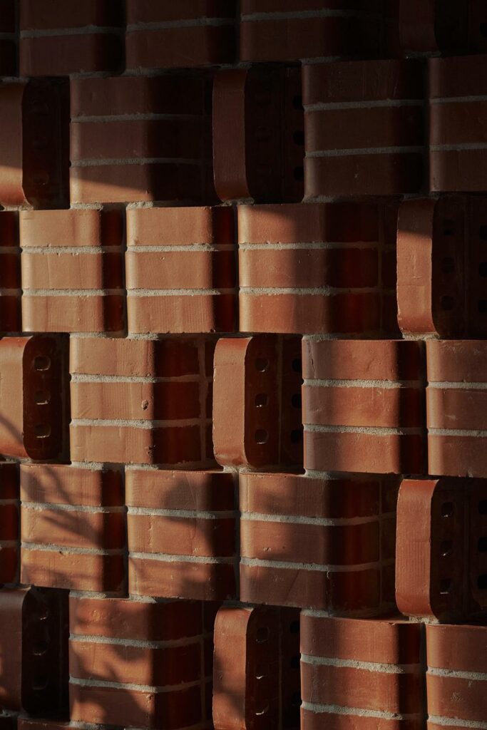 Le hasard, ou plutôt la chance, intervient lors de l’approvisionnement du studio. La manufacture locale a cessé la production de cette brique, faute de demande. Il ne reste que 571 pièces, toutes acquises par le studio. Cette rareté confère au matériau une charge nouvelle. Chaque usage devient ainsi une décision.