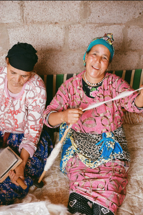 Plus haut, dans l’Atlas, elle rejoint un groupe de femmes amazighes au bord d’une rivière. Leurs gestes, répétés depuis des siècles, s’inscrivent dans le rythme immuable de la nature : laver la laine Siroua à grandes brassées d’eau claire, la carder, puis la filer en fins brins soyeux. Ce travail patient, transmis de mère en fille, relie chaque fibre à la montagne, au passé et à la communauté. Dans ce ballet silencieux, l’artisanat se révèle comme une mémoire vivante, tissée dans le quotidien.