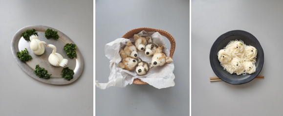 Chiens en chou cabus, pandas en riz ou poissons sculptés dans des légumes… l’artiste culinaire coréenne transforme ses plats en petites fables comestibles qui enchantent Instagram.