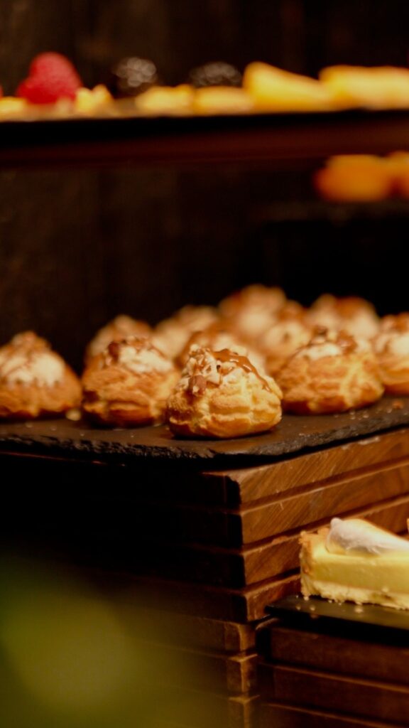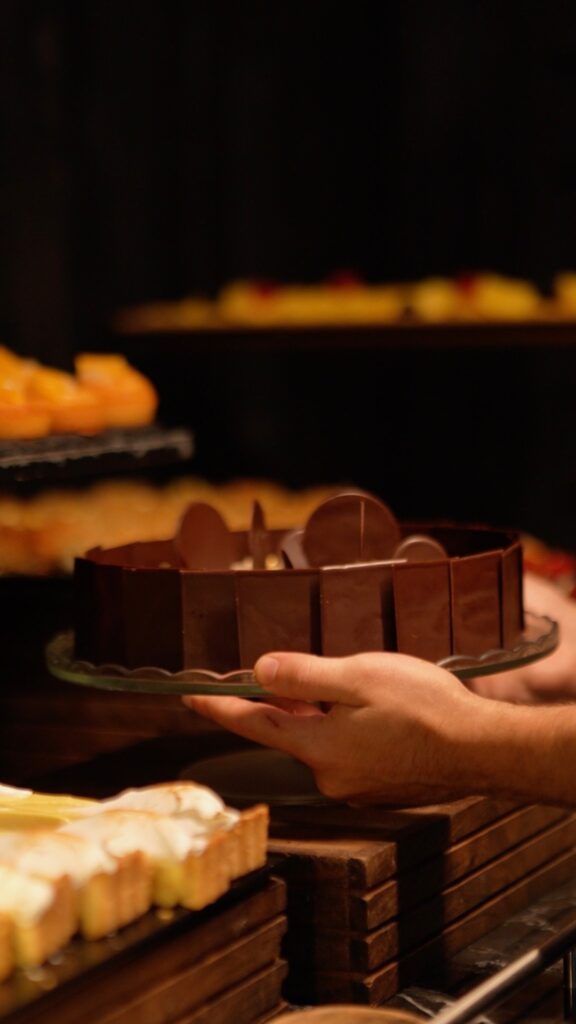 Pour clore ce voyage gustatif, une sélection de douceurs sucrées aux notes fruitées et chocolatées invite à savourer un thé ou un café, et à prolonger la soirée sur une délicate note sucrée.