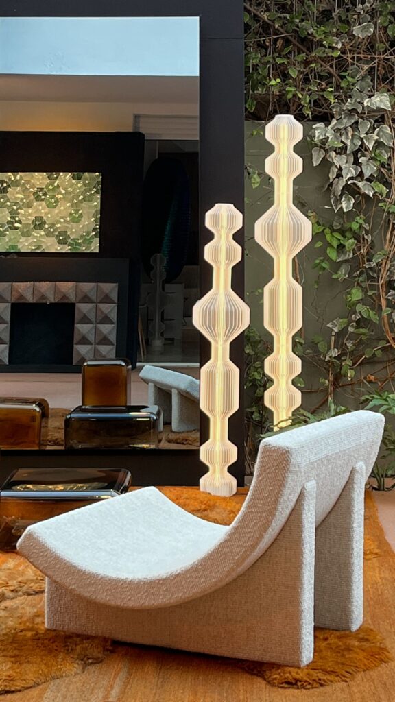 La scénographie déploie une cartographie d’auteurs : Linda Ouhbi, Samir Mazer, Lucas Zito, Andrea De Marchi Verona, Willem Wouters, Oskar Zieta et Fatima Zahra Akhamal, chacun traçant une ligne singulière dans le paysage du design contemporain.