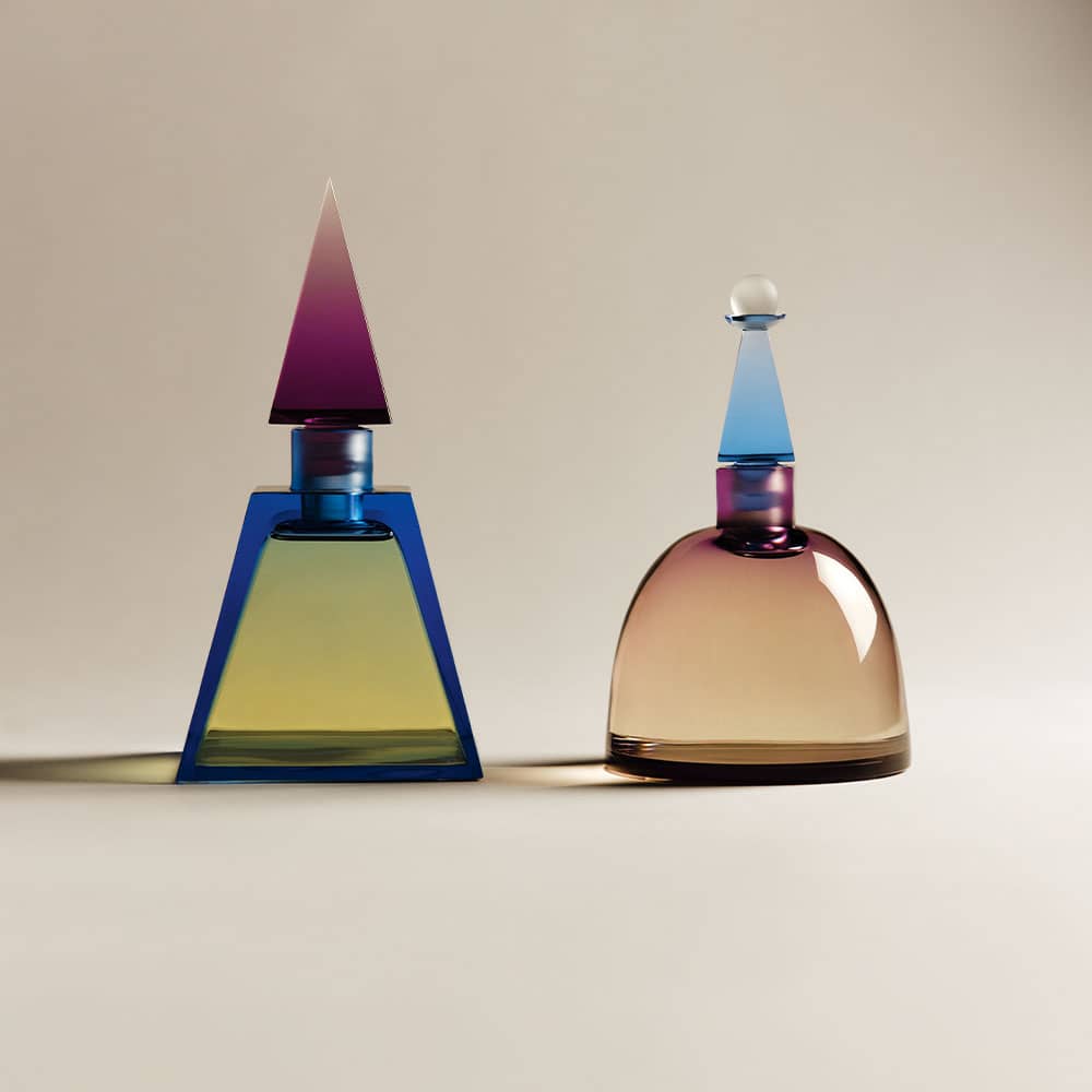 De cette alliance naissent des objets de contemplation : le panneau lumineux Crystal Light, aux ondulations hypnotiques, et les flacons de parfum Range Rider et Purple Sage, véritables sculptures olfactives. Ici, le cristal devient surface de résonance ; la couleur, un souffle.