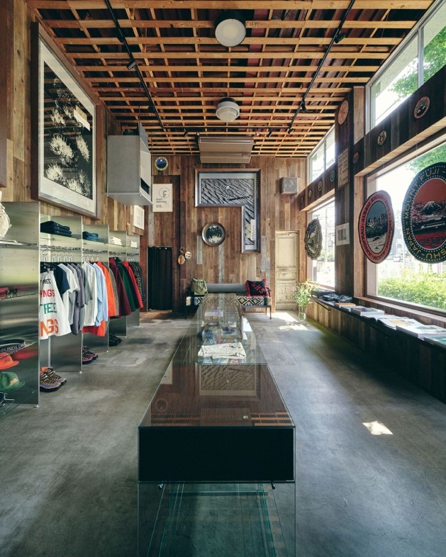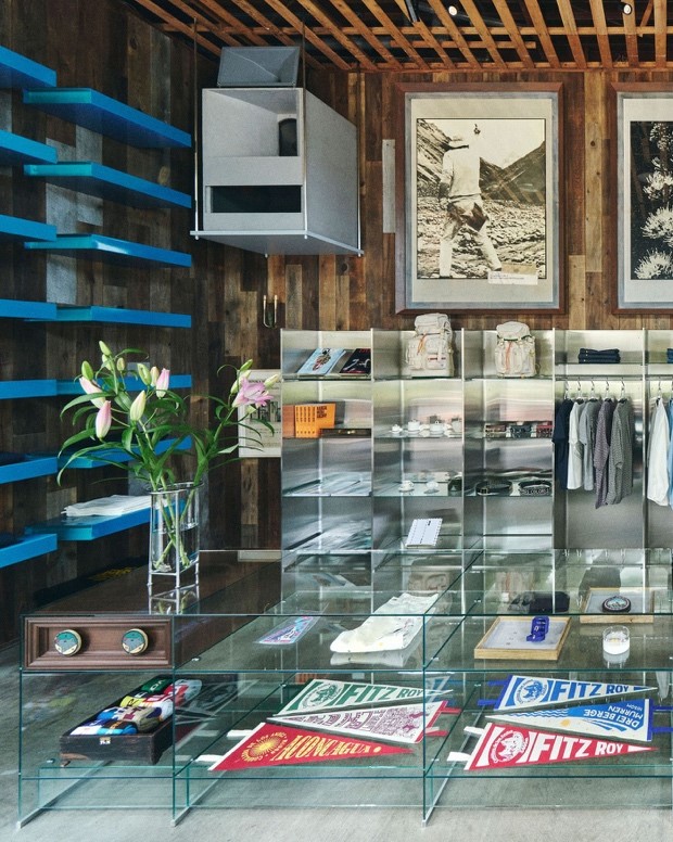 Les collections y occupent une place centrale : la ligne outdoor Die Drei Berge, imaginée pour un marcheur contemporain entre Tokyo et les Alpes, mais aussi des tapis, de la vaisselle, des archives graphiques, et une collaboration avec Porter, maison japonaise de bagagerie, autour d’un sac en toile de voile sans plastique, avec une finition dorée. Chaque objet a été conçu ou choisi par Touhami, pensé comme une pièce d’un puzzle plus vaste.